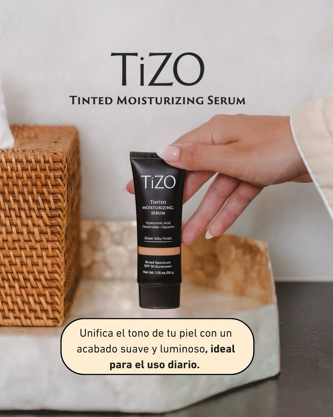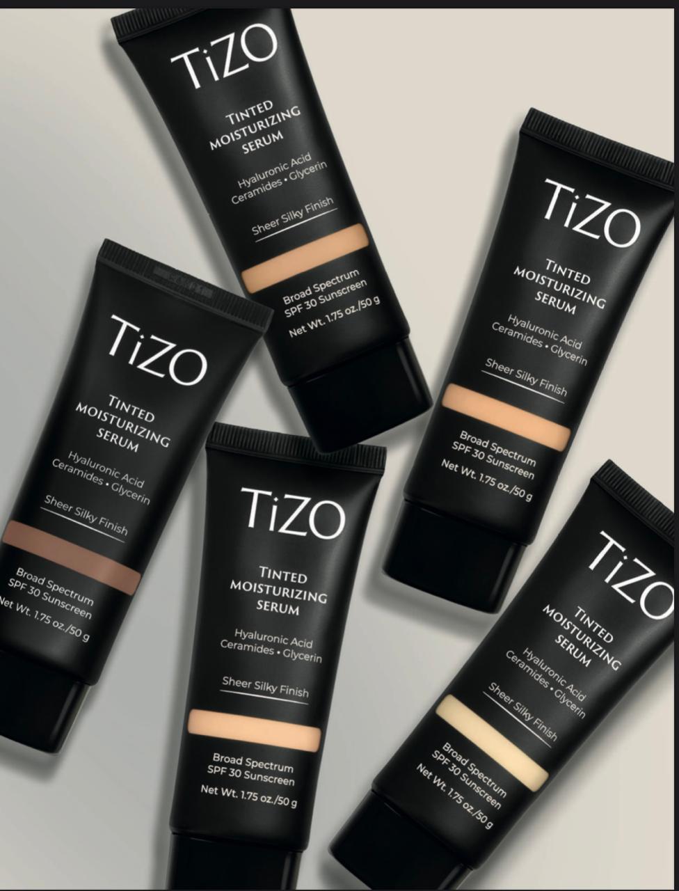 Tinted Moisturizing Serum es una coleccion de 5 tonos ajustables y perfeccionadores que nutren y reparan la piel, proporcionando una hidratacion prolongada, con una fotoproteccion de amplio aspectro 100% mineral.